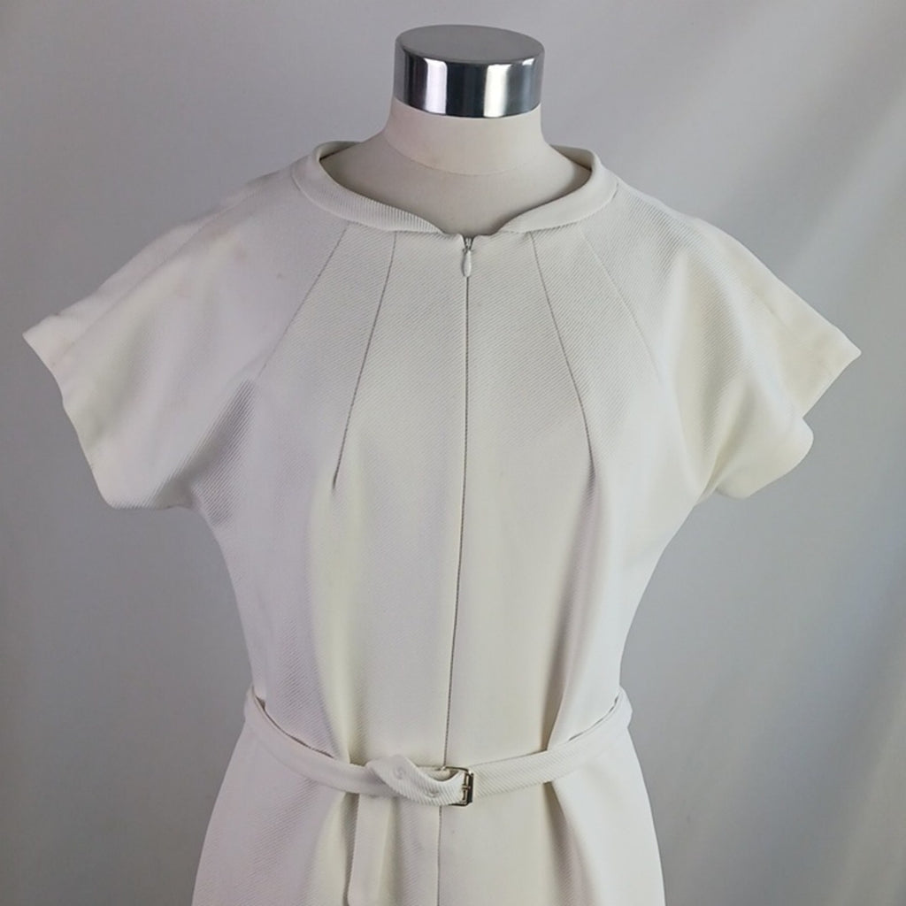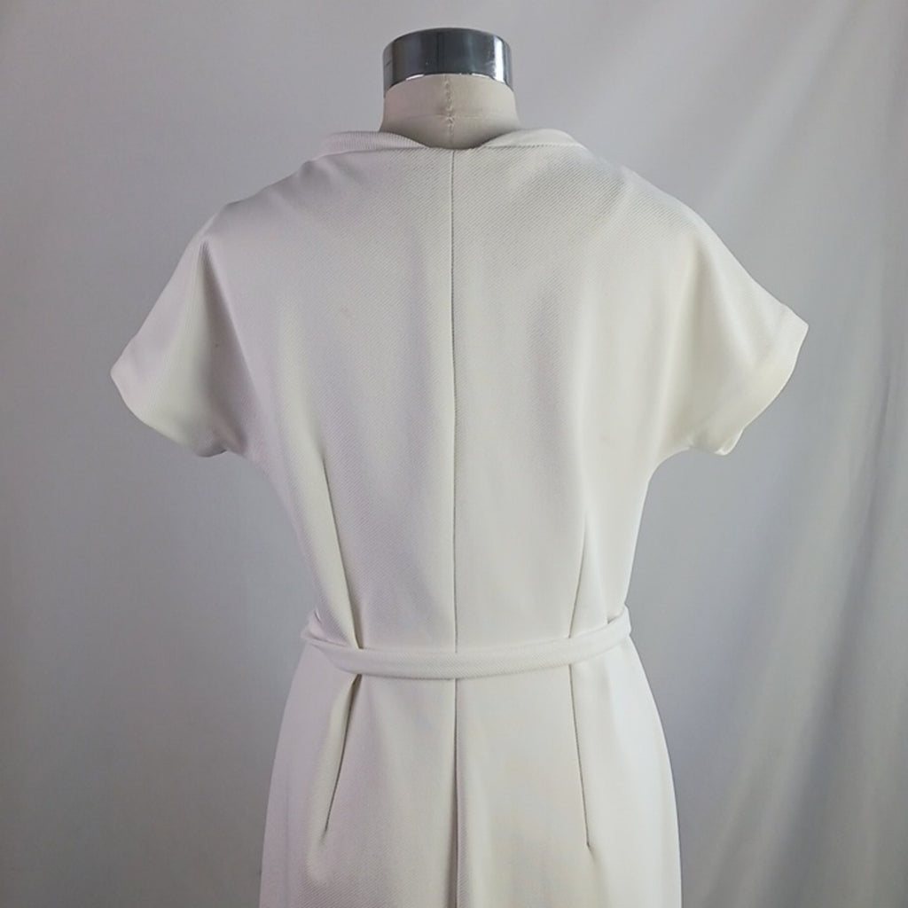 Diane Von Furstenberg Sleeve W Belt Cream Midi Dress.