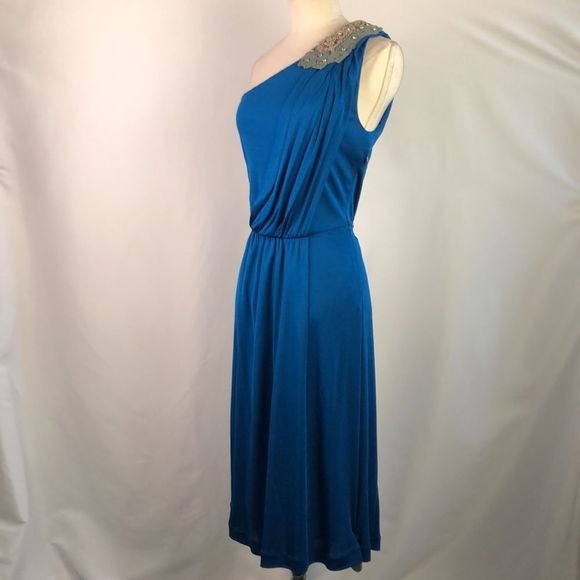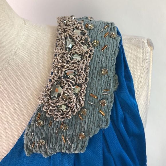 Fendi Cobalt Blue One Shoulder With Beaded Evening Dress