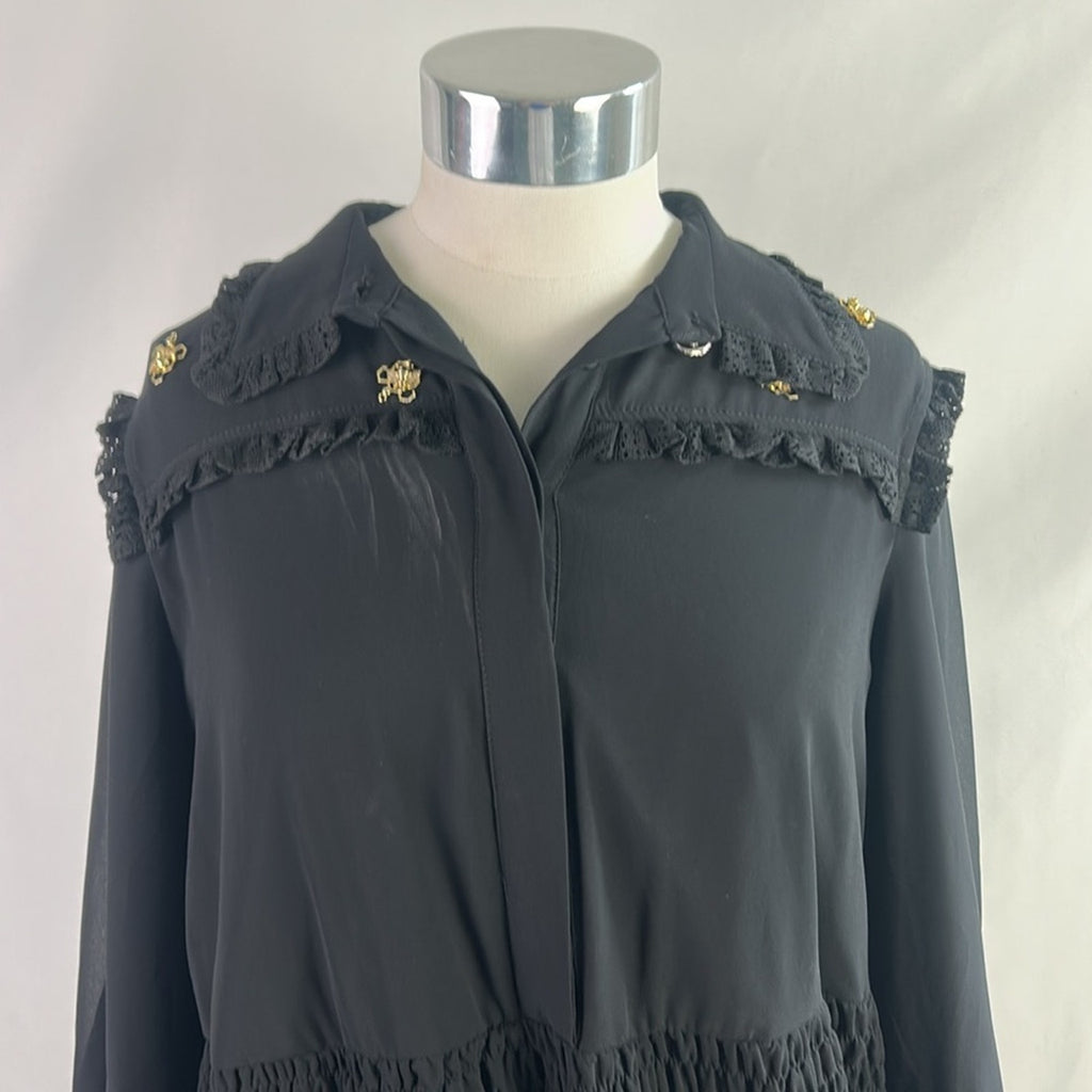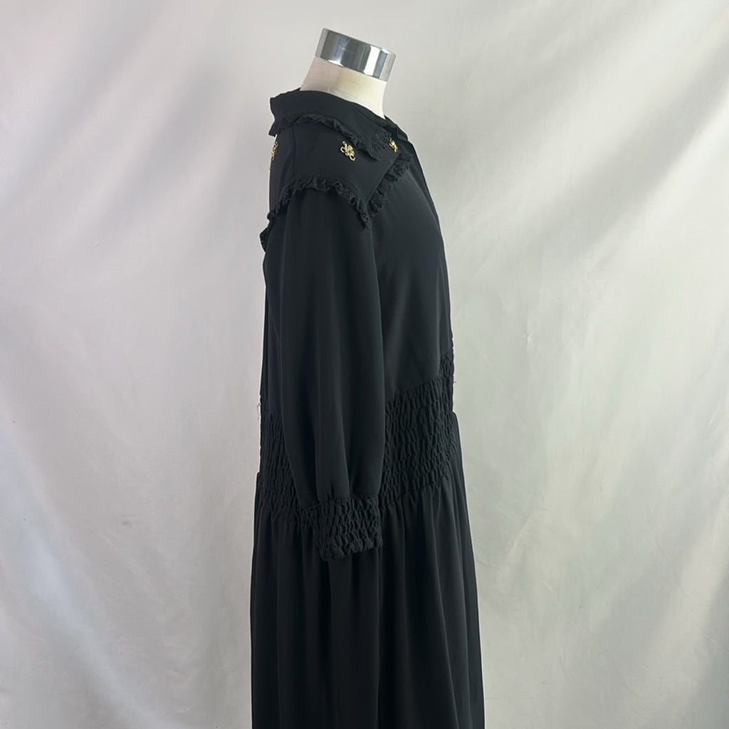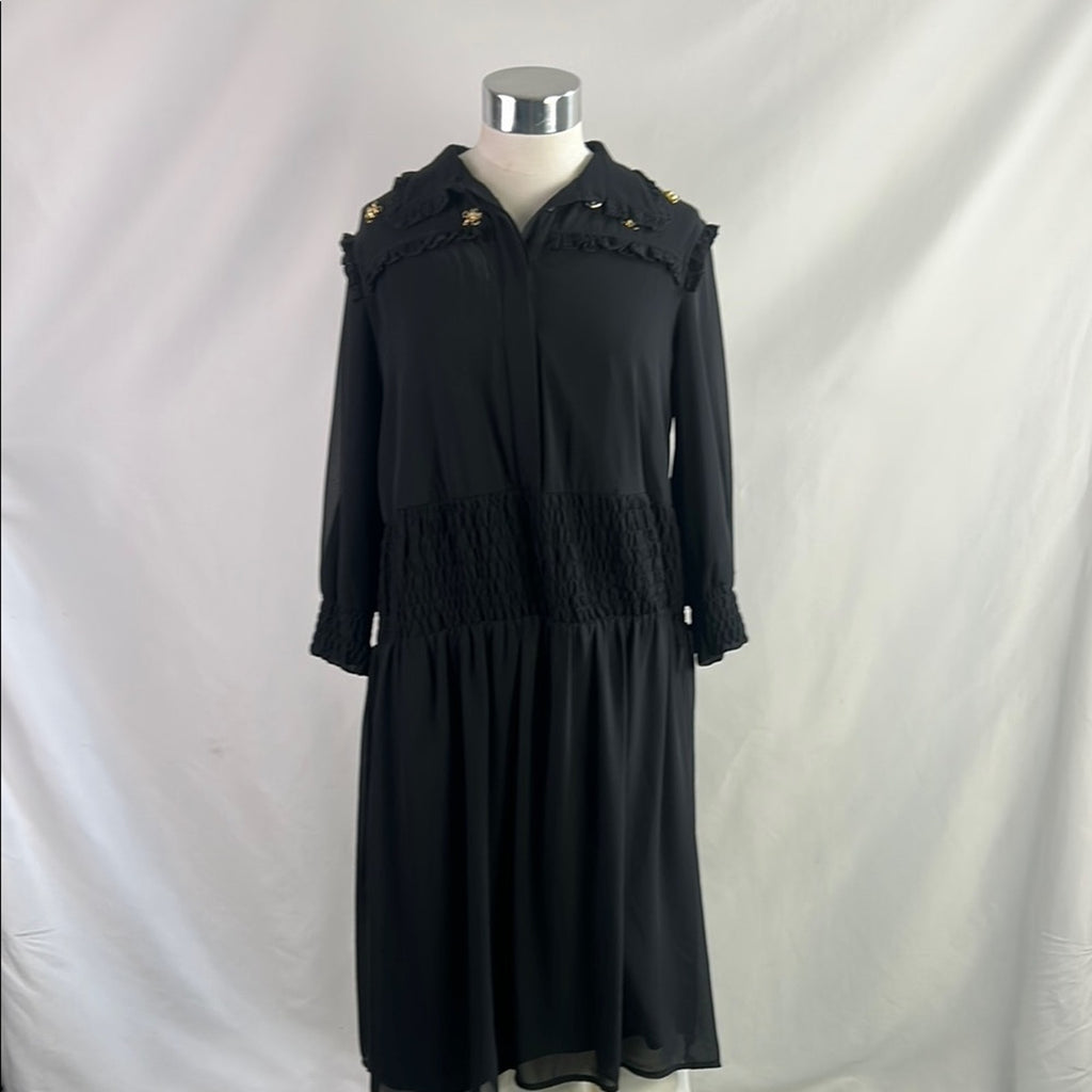 Love Love Paris Black Elastic Waist With Bee Details Midi Dress