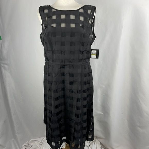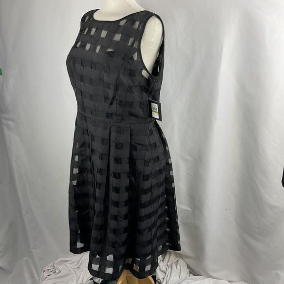 NEW Ellen Trace Black Sheer Plaid Dress with Slip