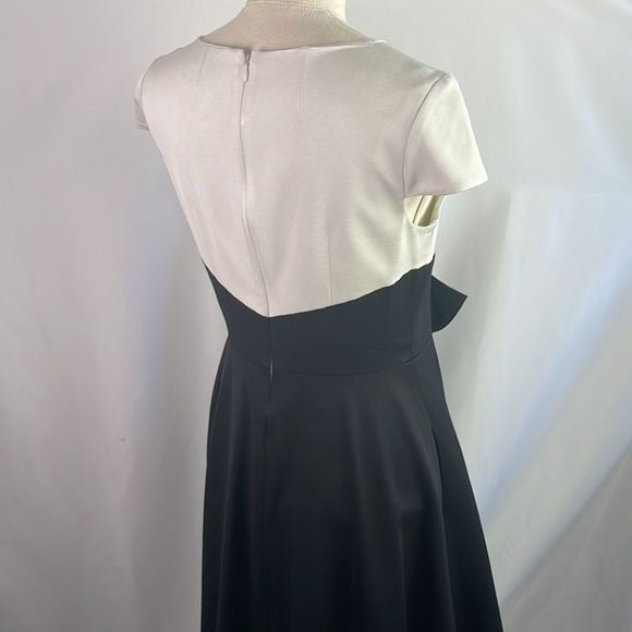 Paula Ka Black Ivory Bow Front Cap Sleeve