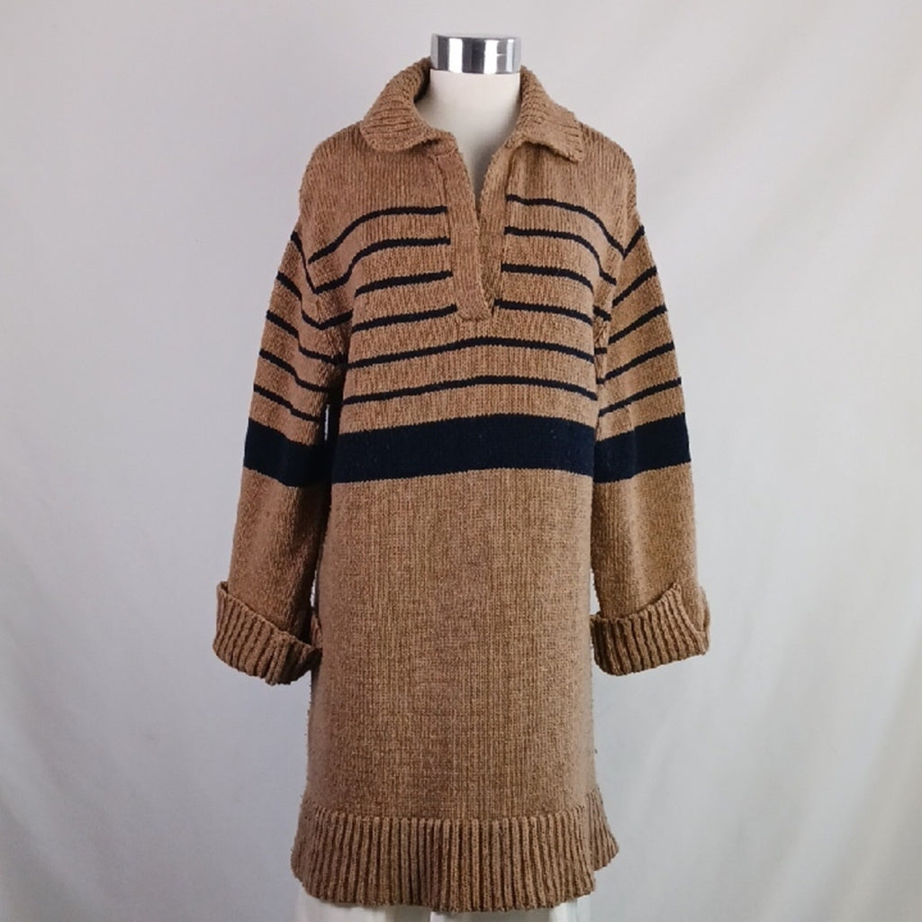 Ciao Lucia Tan and Black Striped Sweater Dress