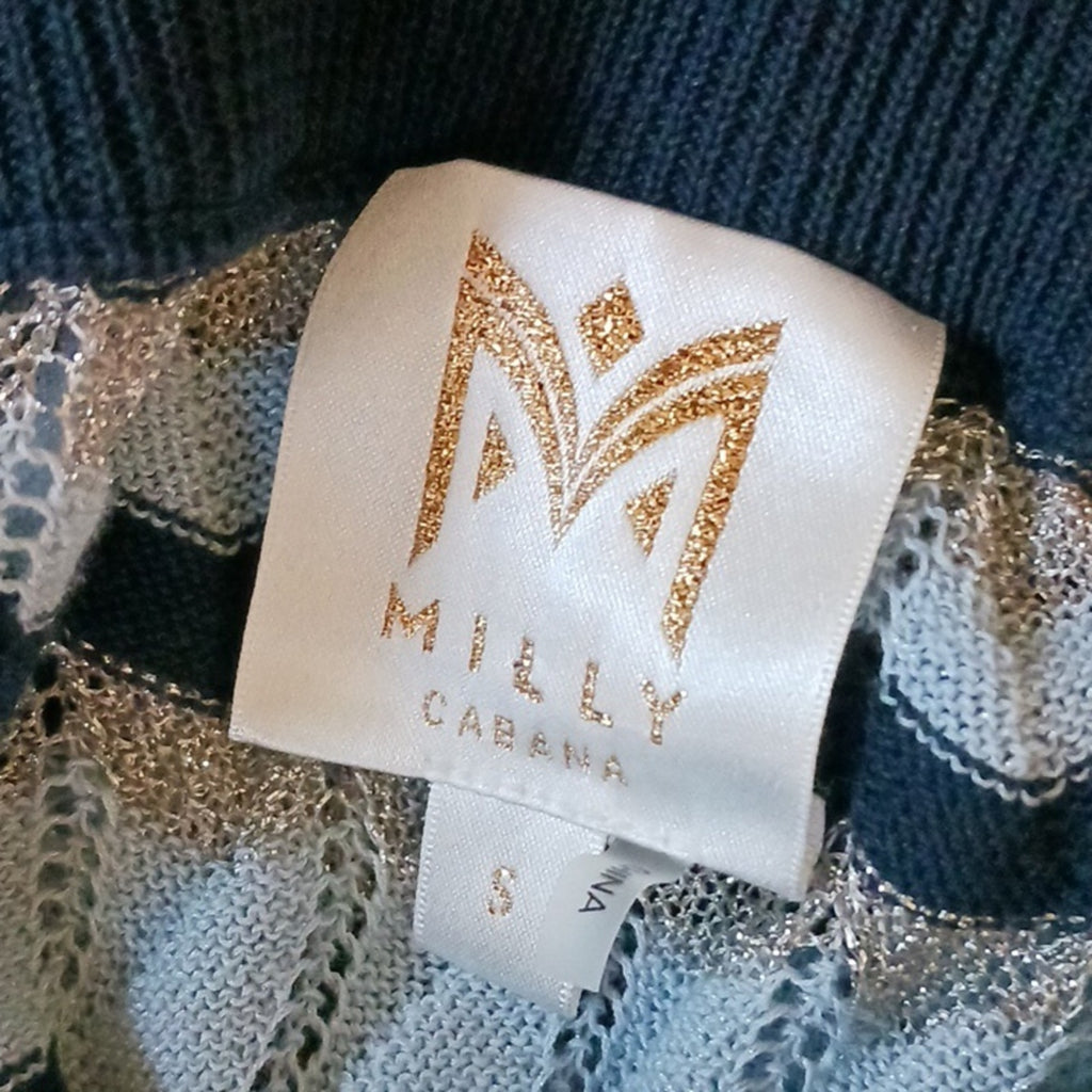Milly Blue Black Shimmer Knit Pencil Skirt