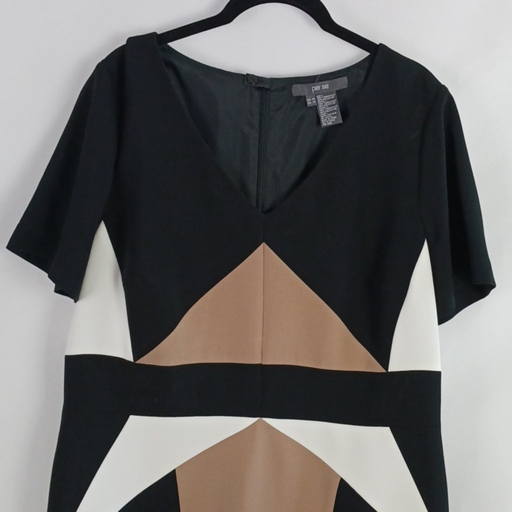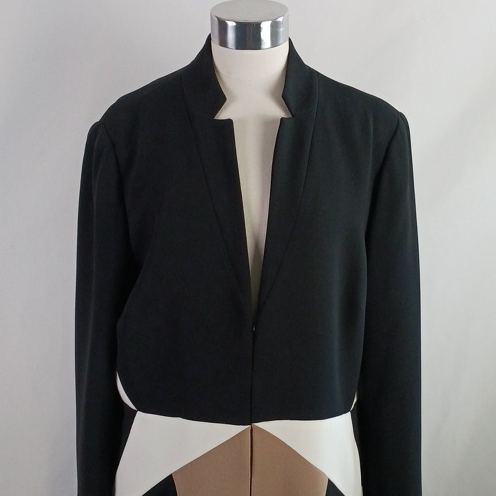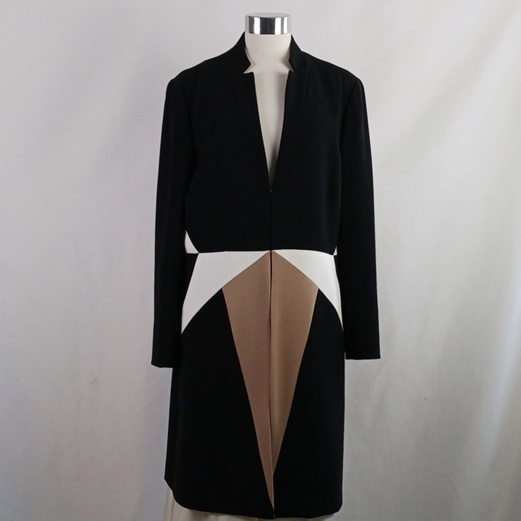Per Se Black and Tan Long Sleeve Sheath Dress With Jacket