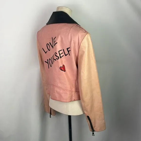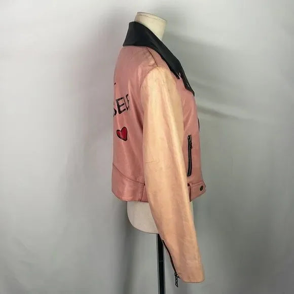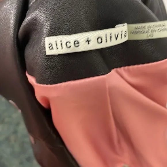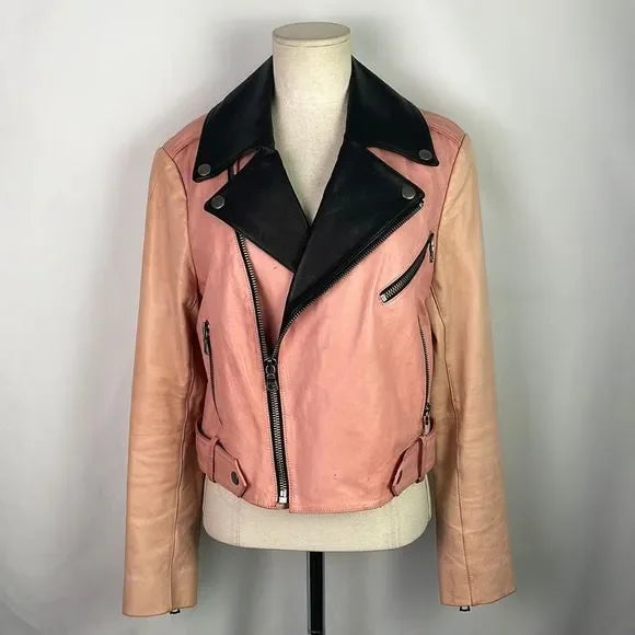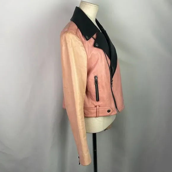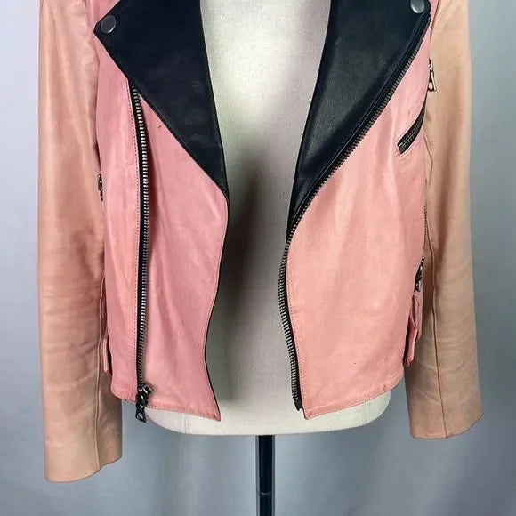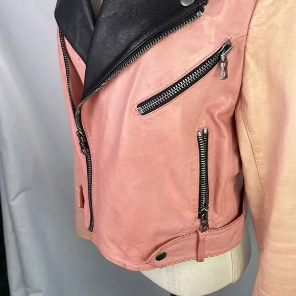 Alice + Olivia Pink/Black Leather Moto Jacket