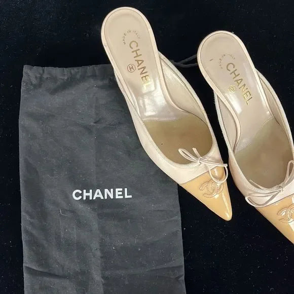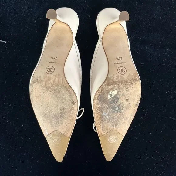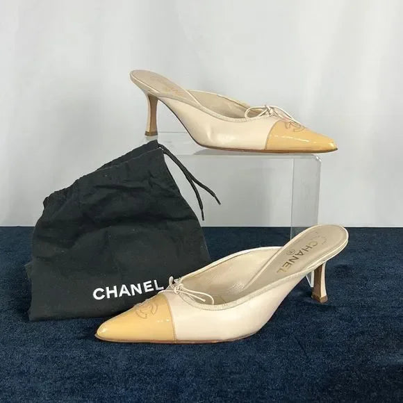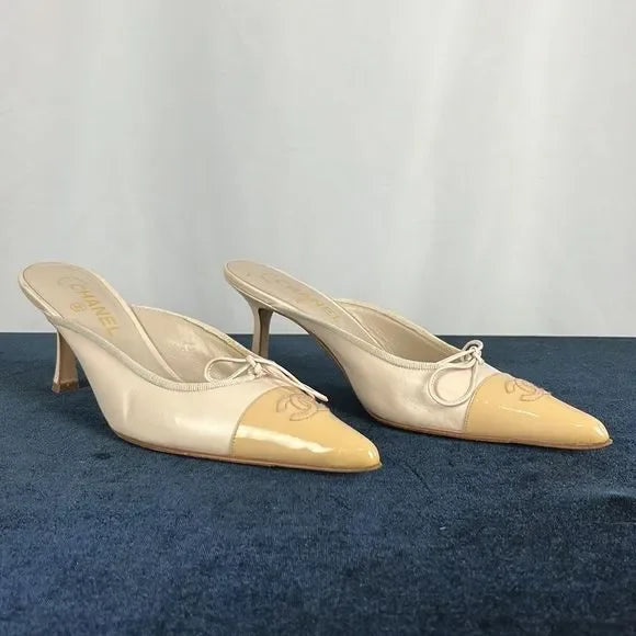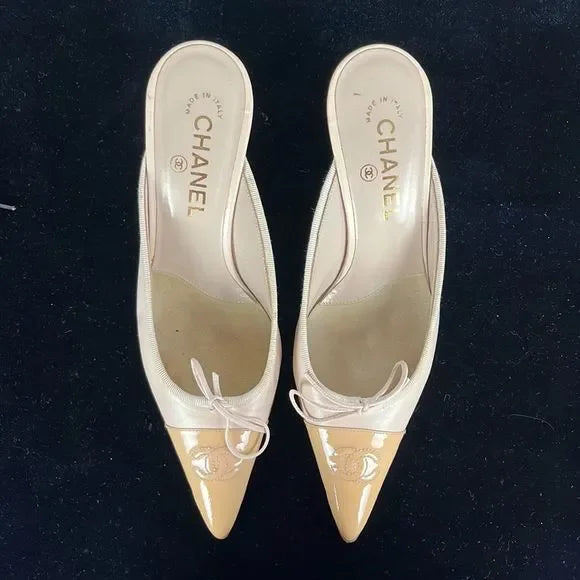 Chanel Cream Cap Toe Mules