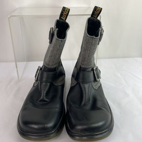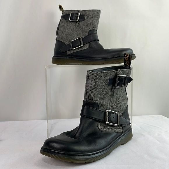 Dr Marten Grey Fabric With Black Leather Ankle Boots
