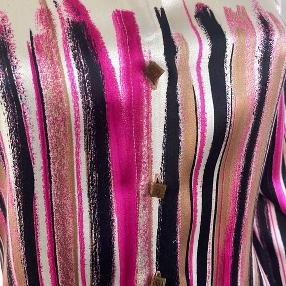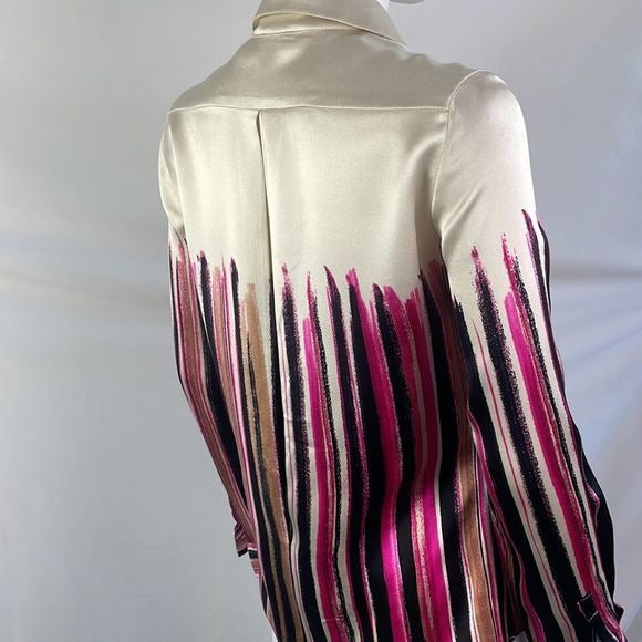 Gianni Versace Pink Multi Striped Cream Silk Blouse
