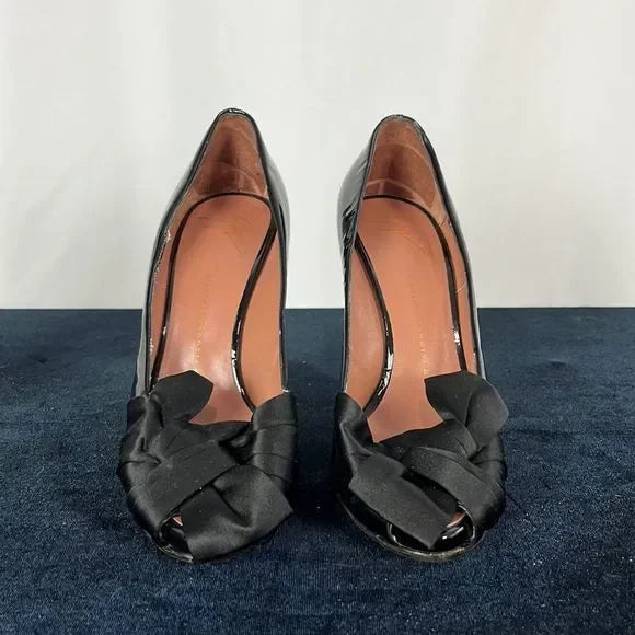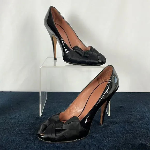 Giuseppe Zanotti Black Satin Peep Toe Pumps
