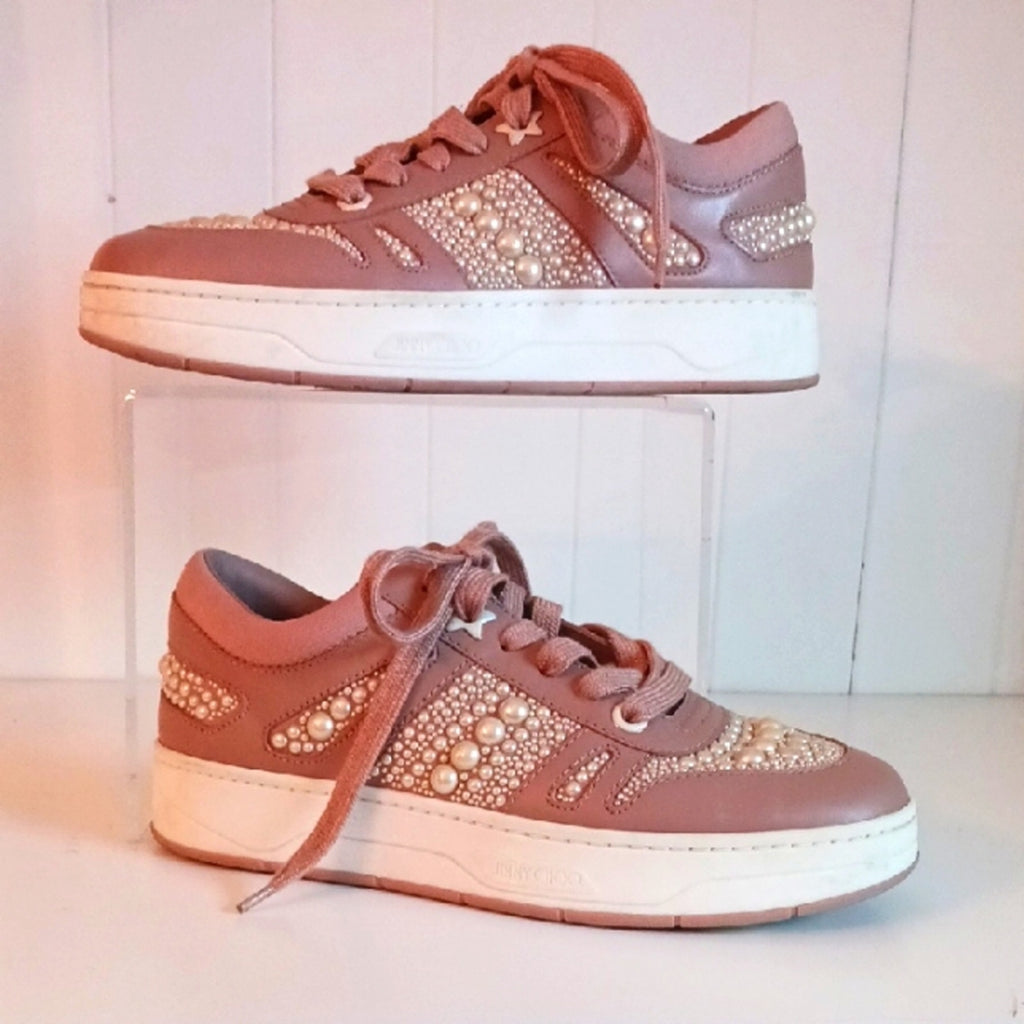 Jimmy Choo Taupe With Pearl Beads Sneakers