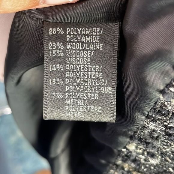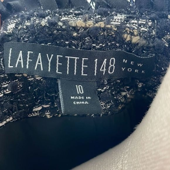 Lafayette 148 Black Tweed Ribbon Trim Open Front Jacket