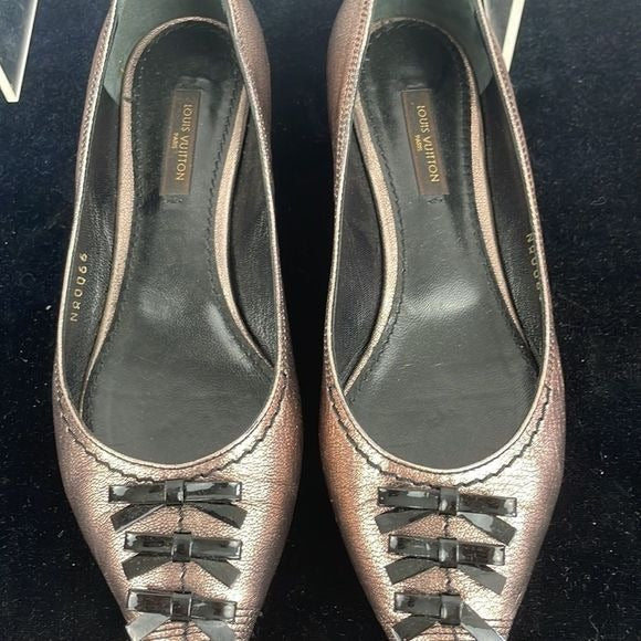Louis VuittonĀ Copper w Black Bow Low Heel Shoes