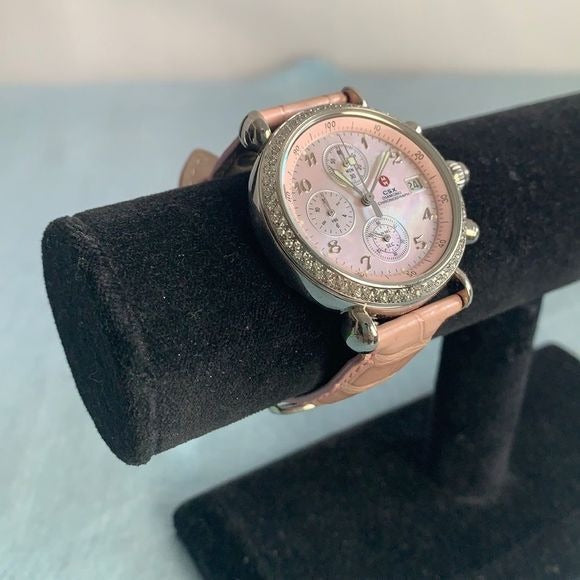 Michele CSX mother of pearl face pink watch