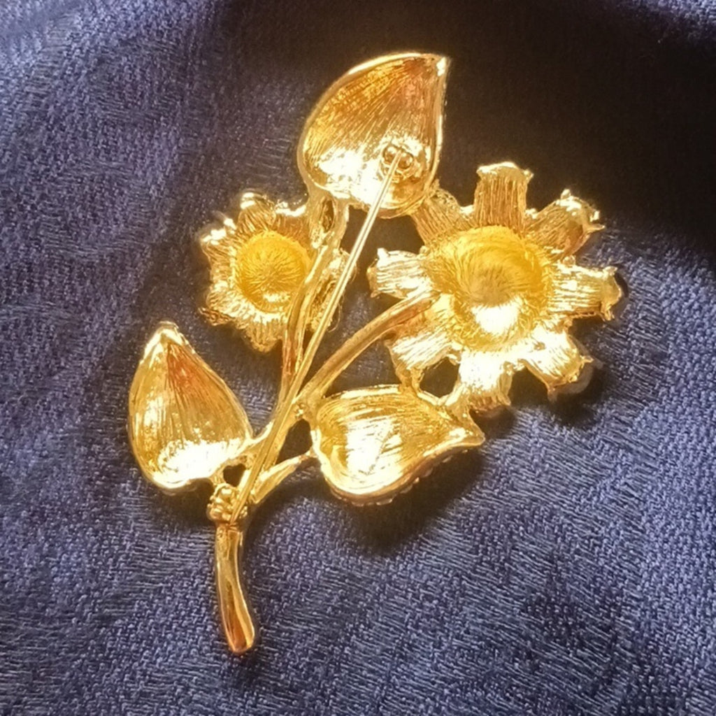 Monet Gold Rhinestone Flower Brooch Vtg.