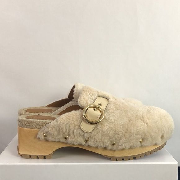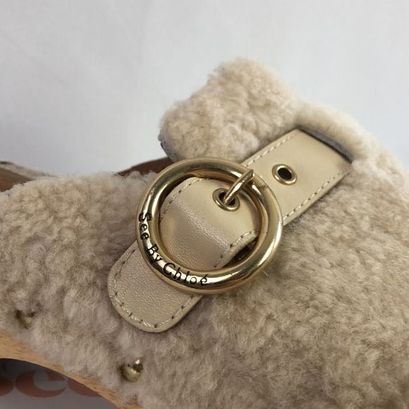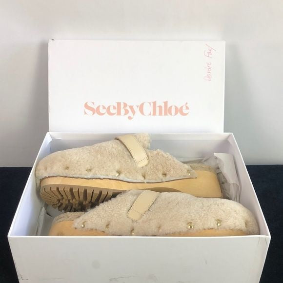 New in Box See by Chloe Cream Shearling Clogs