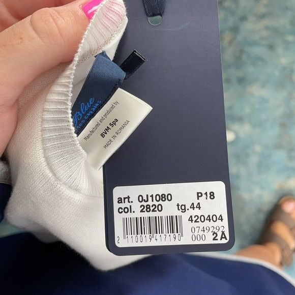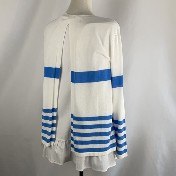 NEW Les Copains Blue Striped Top with Ruffle