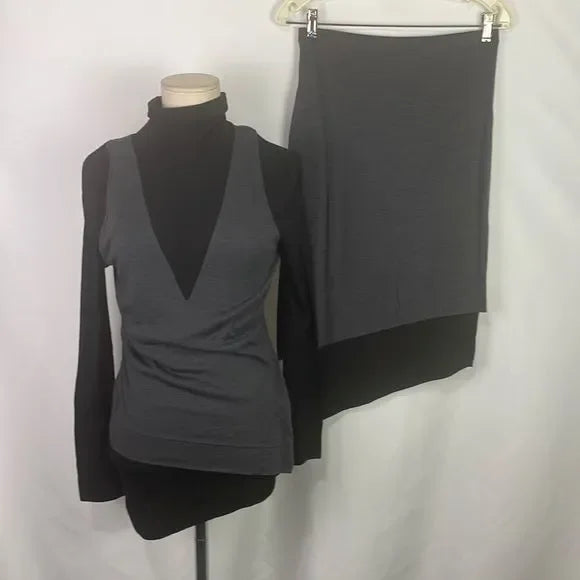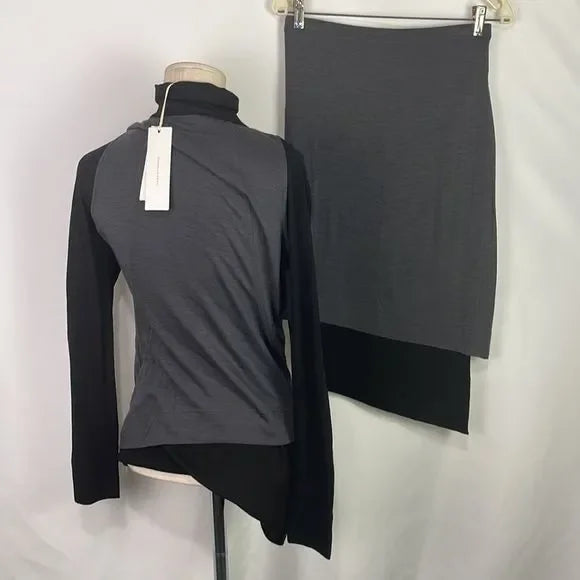 NWT Donna Karan Gray Black Color Block Skirt Set