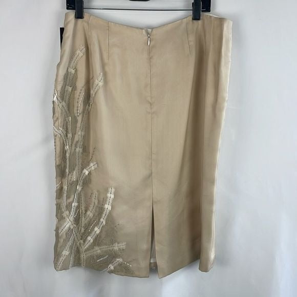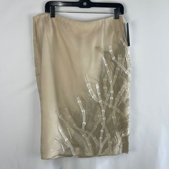 NWT Lafayette 148 Tan w Embroidery Skirt