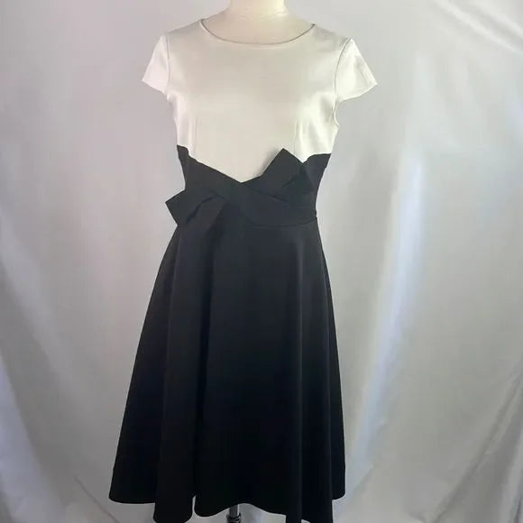 Paula Ka Black Ivory Bow Front Cap Sleeve