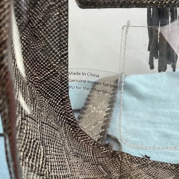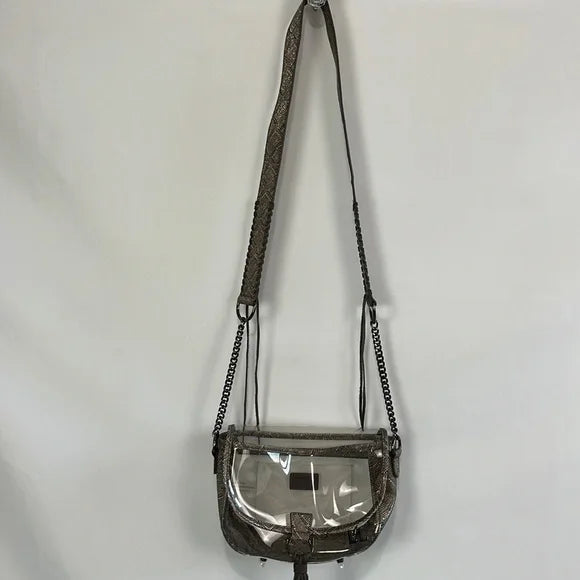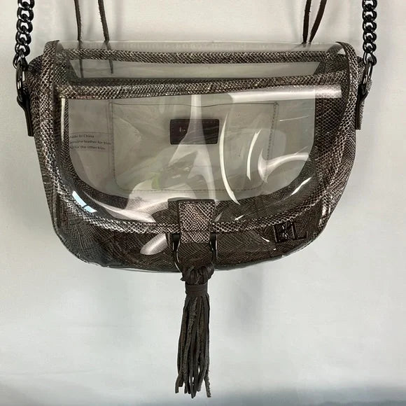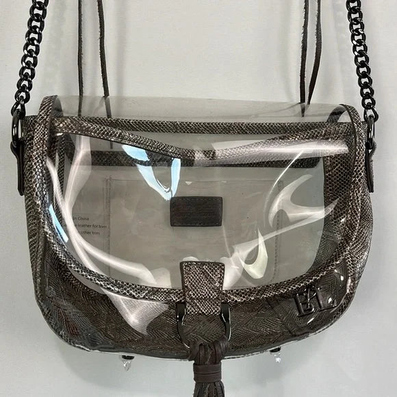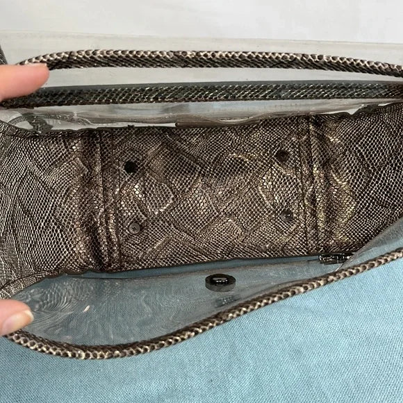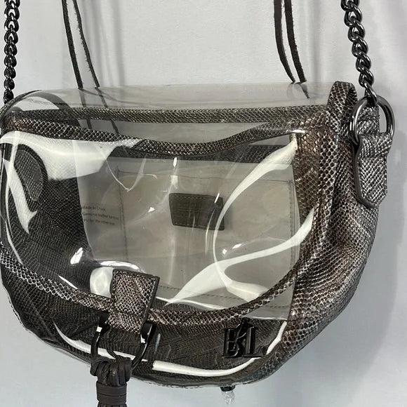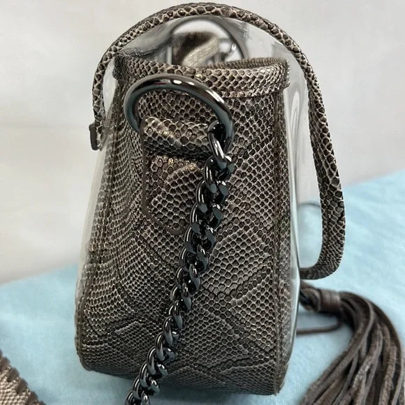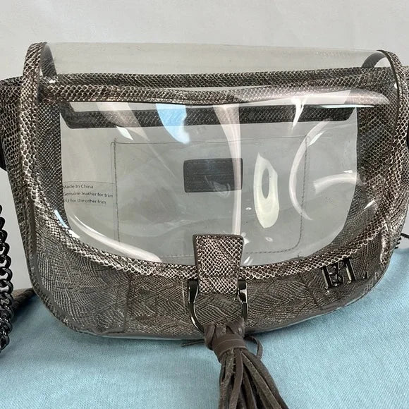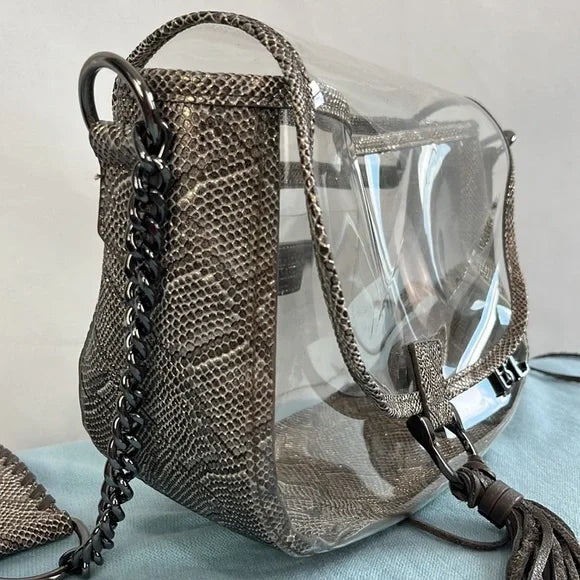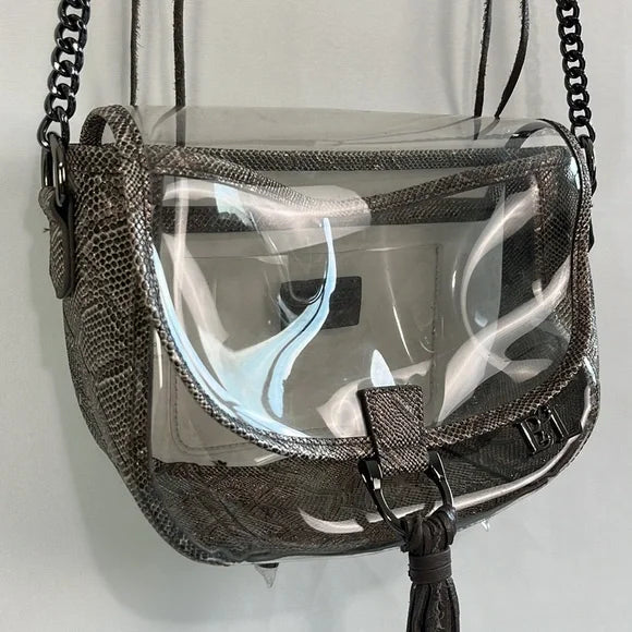 Purseception Clear Criss Body Bag with Leather Snake Pattern Trim