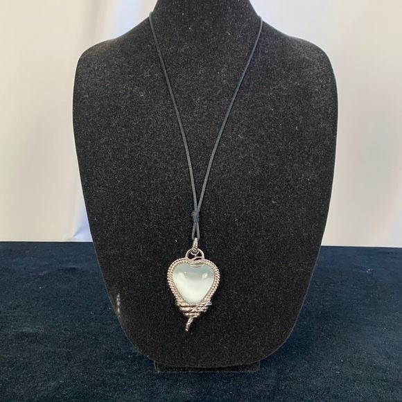 Roberto Cavalli Large Heart With Snake Pendant on Black Cord