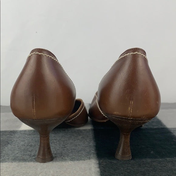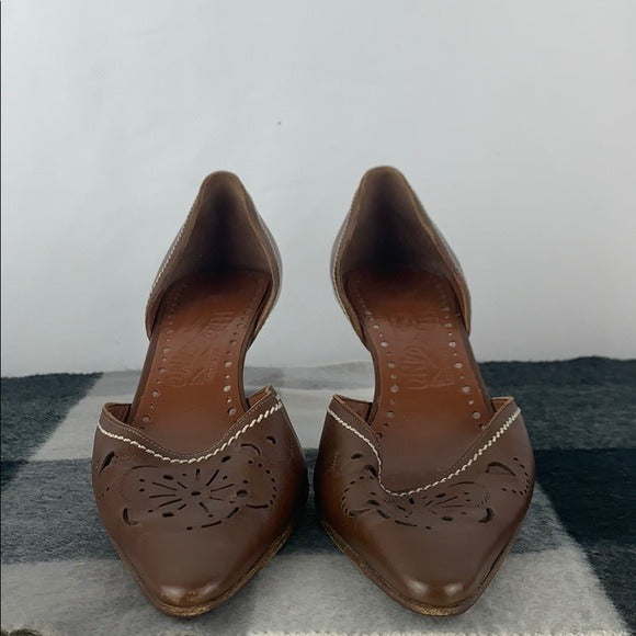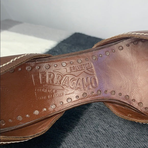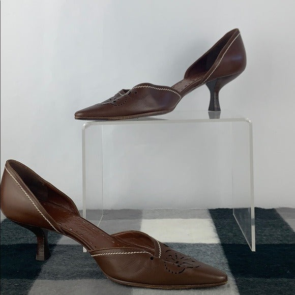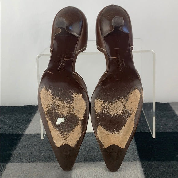 Salvatore Ferragamo Brown Pierced KittenHeelPumps