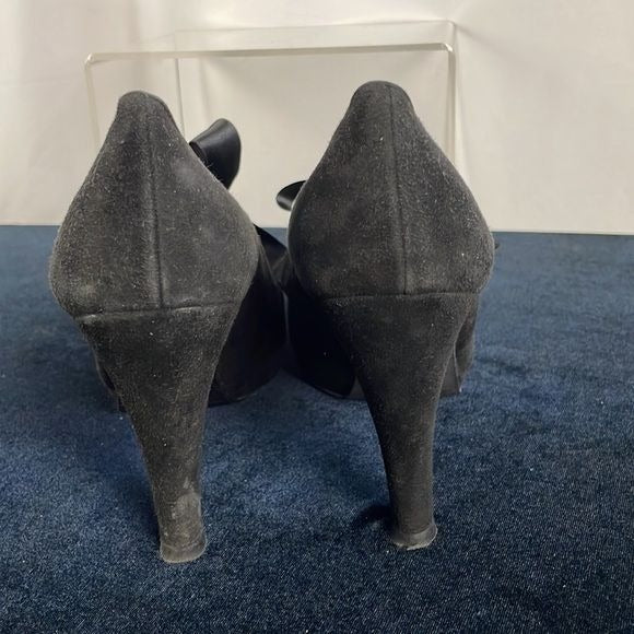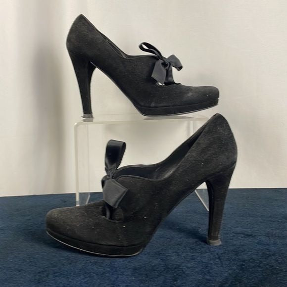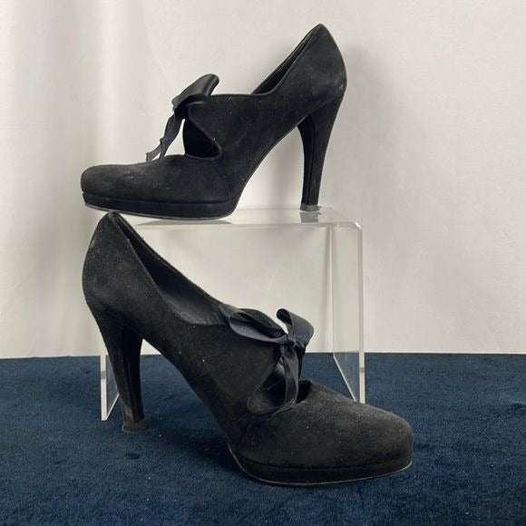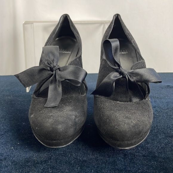Stuart Weitzman Black Suede Platform Shoes with Bow Ties