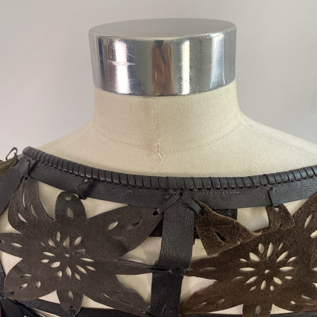 Suede and Leather Brown Multicolor Cut Out Shawl